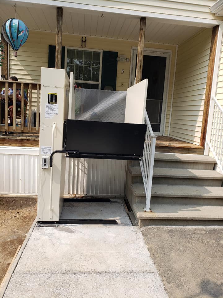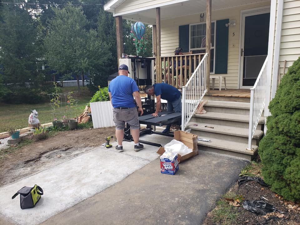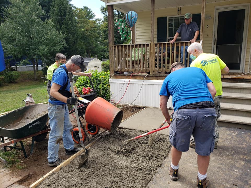 We worked in partnership with Elks Lodge 720 for a disabled Air Force Veteran. The Elks covered the costs and Habitat Build Crew Volunteers provided the labor for a new concrete path and installation of a new chair lift in Nashua, NH Sept. 11-13th, 2020. This honorable Veteran can now enter and exit his home safely.